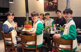Oner与T1续约至2028赛季,T1随后晒出一张五名首发选手聚餐给Oner过生日的照片👇照片中,O...