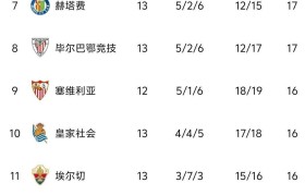西甲联赛第13轮战罢,积分榜顶端彻底陷入...